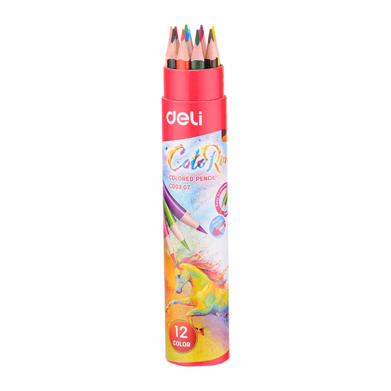 Spalvoti trikampiai 12 spalvų pieštukai. cilindere +drožtukas Colo Run Deli