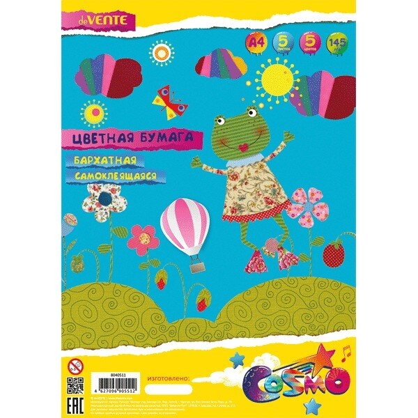 Spalvoto lipnaus barchatinio popieriaus rinkinys deVENTE, A4, 145g, 5 lapai