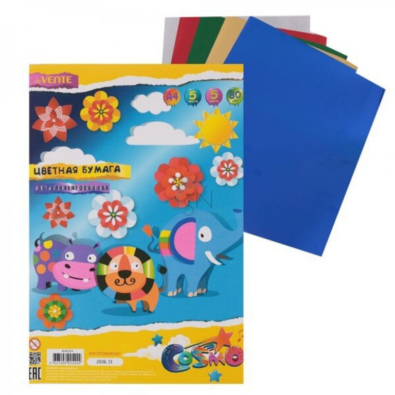 Spalvoto popieriaus rinkinys deVENTE, A4, 80g, metalikos spalvų, 5 lapai