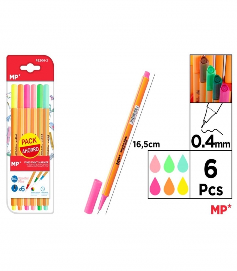 Spalvotų tušinukų rinkinys MP 0,4mm 6vnt
