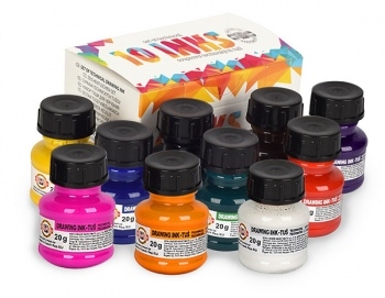 Spalvotų tušų rinkinys braižybos ir apipavidalinimo darbams.Akrilinis, vandens pagrindu tušas.