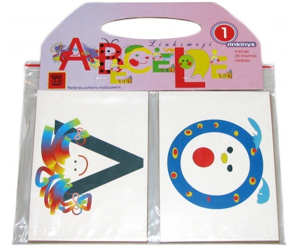 Rinkinyje: 28 kartoninės kortelės (14 8mm. x 98 mm.) su raidėmis.