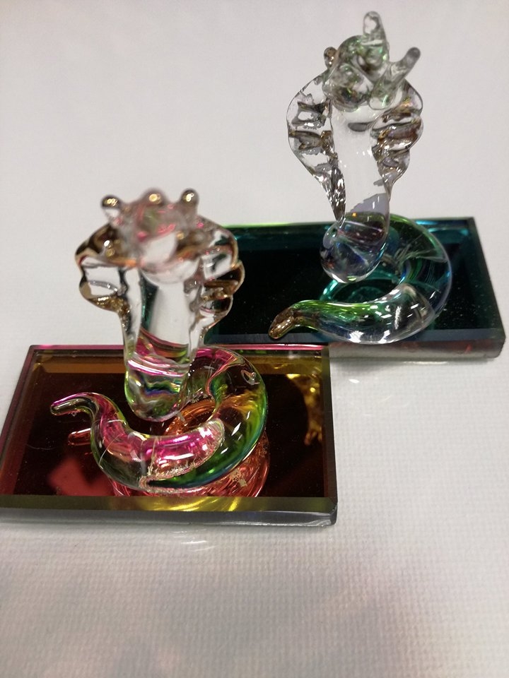 Statulėlė stiklinė gyvatė, dviejų spalvų, tinka kaip dekoracija.