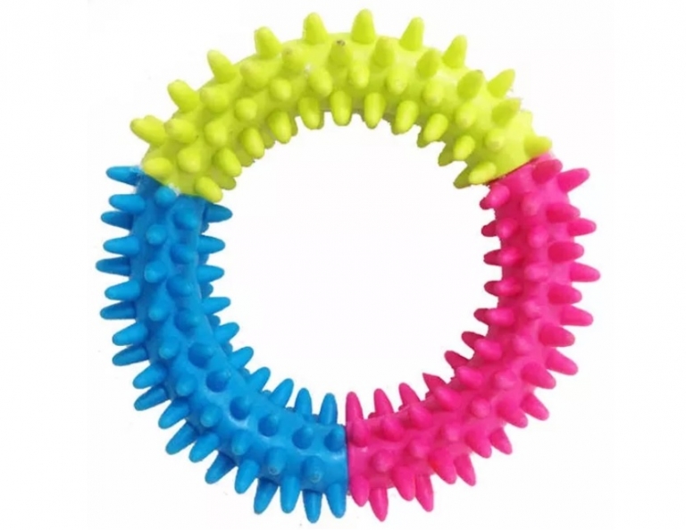 Šuns žaislas apvalus kramtukas spalvotas su spygliukais