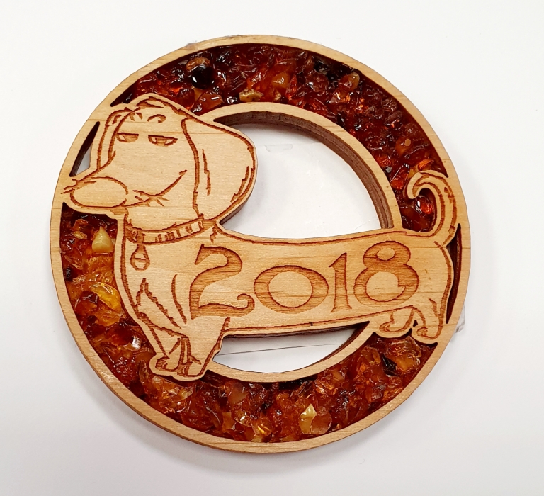 Suvenyras medinis su magnetuku ir gintaru ŠUO 2018 m.
