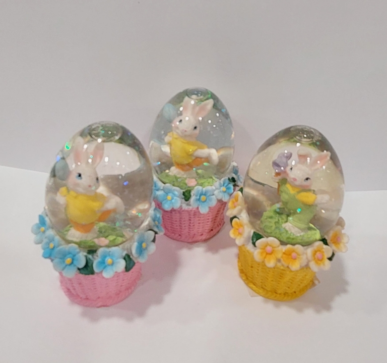 Suvenyras Velykinis Kiškis krepšelyje su gėlėmis 7,5cm.