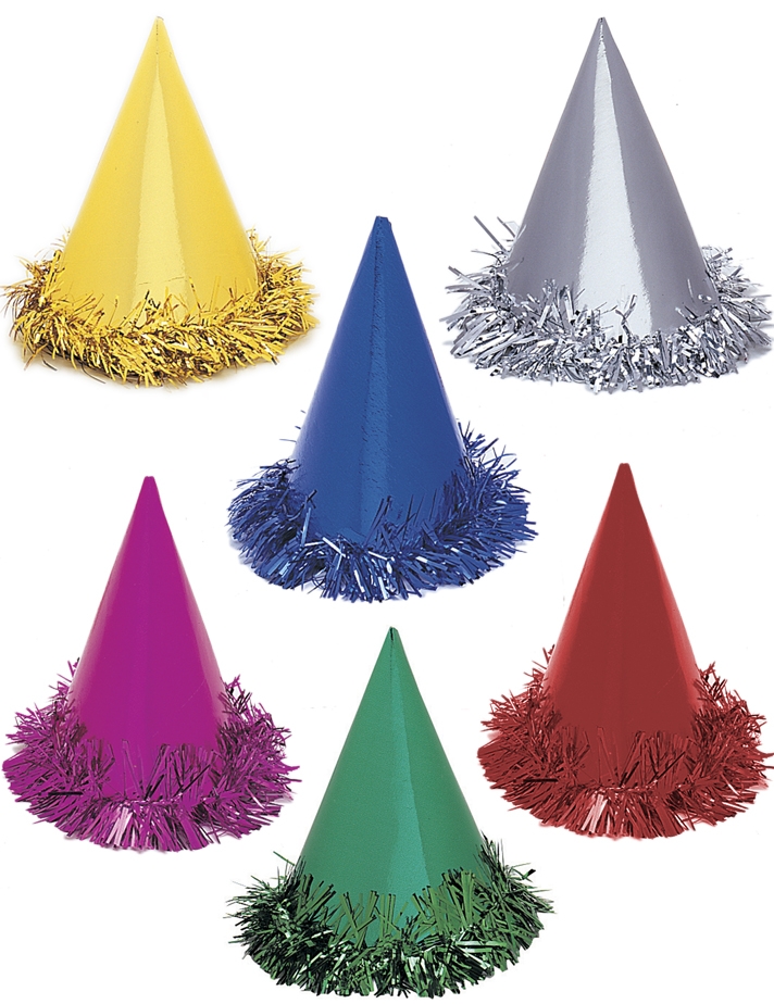 Šventinės kepuraitės, įvairių spalvų, tinka praskaidrinti gimtadienio šventę.