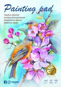 Tapybos albumas "BIRDS" PREMIUM A4, 20 lapų, popierius 160 gm2, kieta nugarėlė 1,25 mm