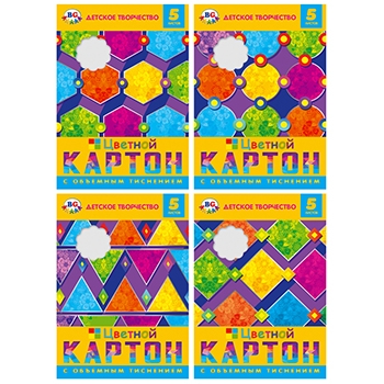 Teksturinis blizgantis spalvotas kartonas A4, 5 spalvos
