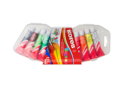 Tempera dažai KORES, 12 ml tubelėse, 12 spalvų rinkinys
