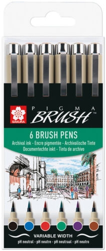 Teptukinių markerių rinkinys Sakura Pigma Brush 6 standartinės spalvos