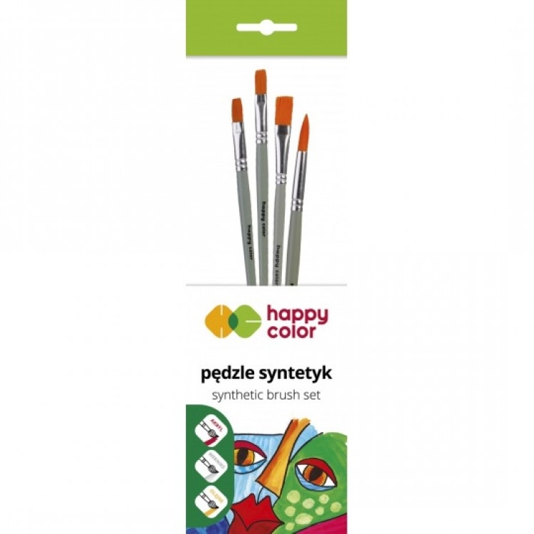 Teptukų rinkinys Happy Color 4vnt.,N.2/4/8 plokšti, N8 apvalus, sintetika