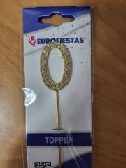 Torto dekoracija - skaičius "0" su deimantukais - 10.5cm. auksinės spl.