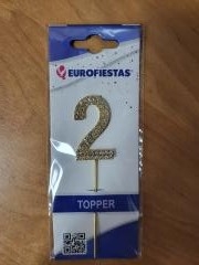 Torto dekoracija - skaičius "2" su deimantukais - 10.5cm. auksinės spl.