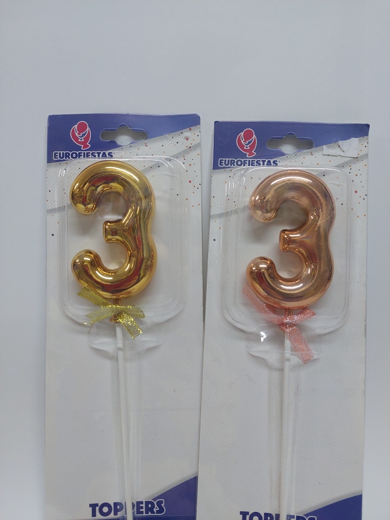 Torto dekoracija - skaičius "3" - 22cm. įvairių spl.