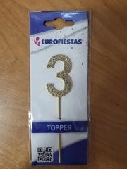Torto dekoracija - skaičius "3" su deimantukais - 10.5cm. auksinės spl.