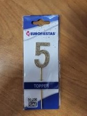 Torto dekoracija - skaičius "5" su deimantukais - 10.5cm. auksinės spl.