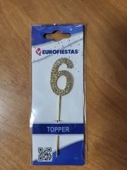 Torto dekoracija - skaičius "6" su deimantukais - 10.5cm. auksinės spl.