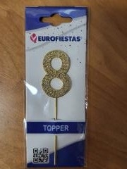 Torto dekoracija - skaičius "8" su deimantukais - 10.5cm. auksinės spl.