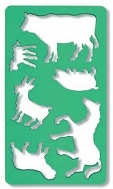 Trafaretas piešimui, pagamintas iš tvirtos plastmasės.