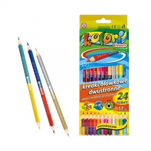 Tribriauniai dvipusiai spalvoti pieštukai su drožtuku "Kolori Premium" PENMATE, 12 vnt. - 24 spalvų