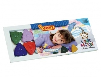 Pakuotėje 10 spalvų: tamsiai žalia, tamsiai violetinė, šviesiai violetinė,rubino, pilka,rožinė, ochros,turkio, žalia, dramblio kaulo. Ilgis 45mm, diametras 40mm. Sunkiai lūžta. Lengvai piešia. Netoksiškos.