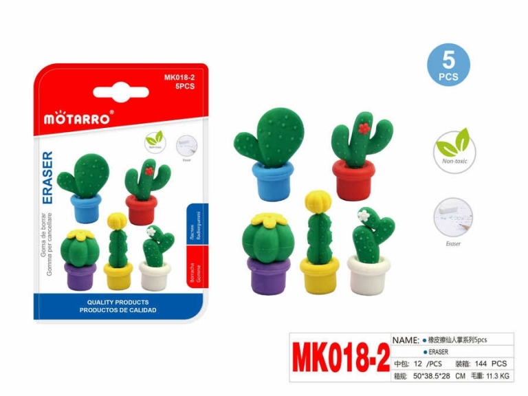 Trintukas KAKTUSAS 5vnt MOTARRO – tai puikus pasirinkimas kiekvienam mokiniui ir studentui, kuris vertina kokybę ir stilingą dizainą. Šie trintukai ne tik efektyviai ištrins pieštuko žymes, bet ir taps smagia stalo dekoracija.