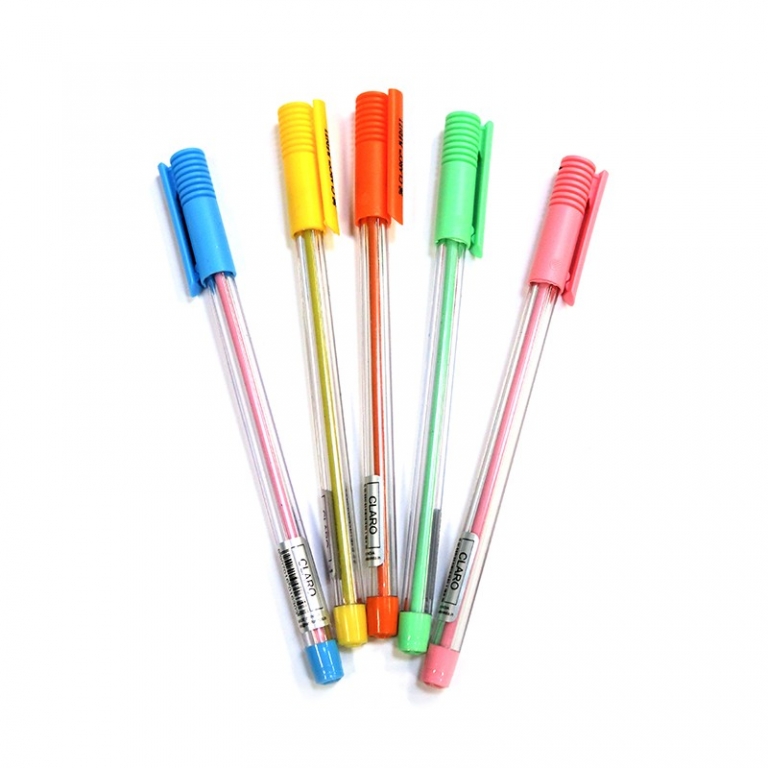 Įvairių spalvų korpusas. Rašalas - mėlynas.
