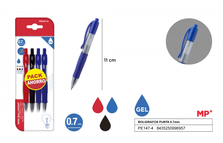 Tušinukų rinikinys MP 0.7mm įvairių sp. 4vnt. geliniai
