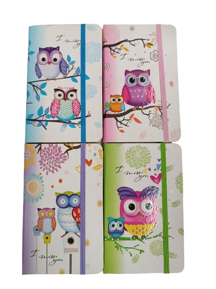 Užrašų knygelė A su gumele, linija, Pelėda