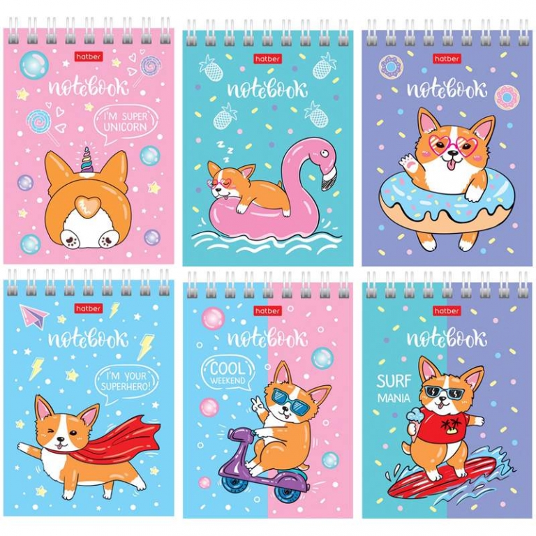 Užrašų knygelė su spirale A7,"Funny Corgi" 40lap. langeliais, Centrum