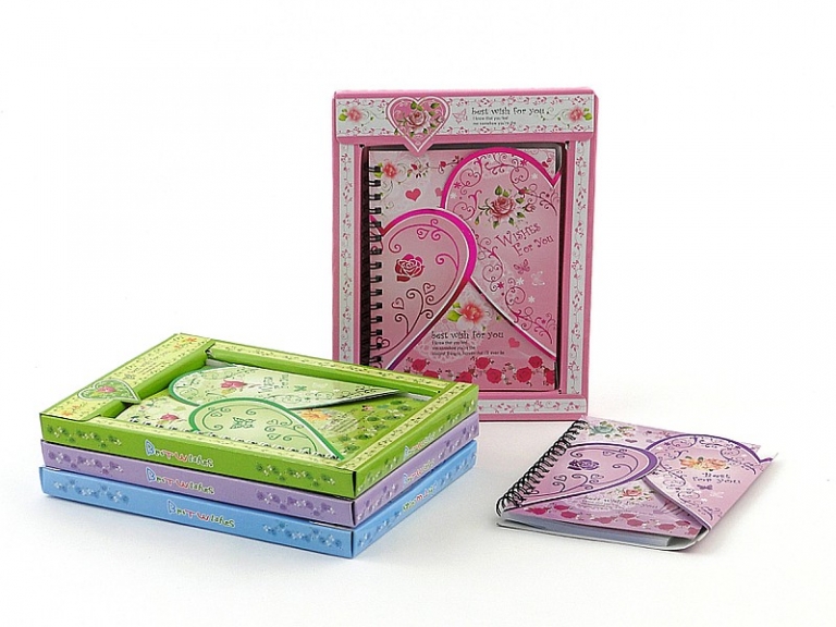 Užrašų knygutė 15x12cm su spirale dėžutėje širdutės
