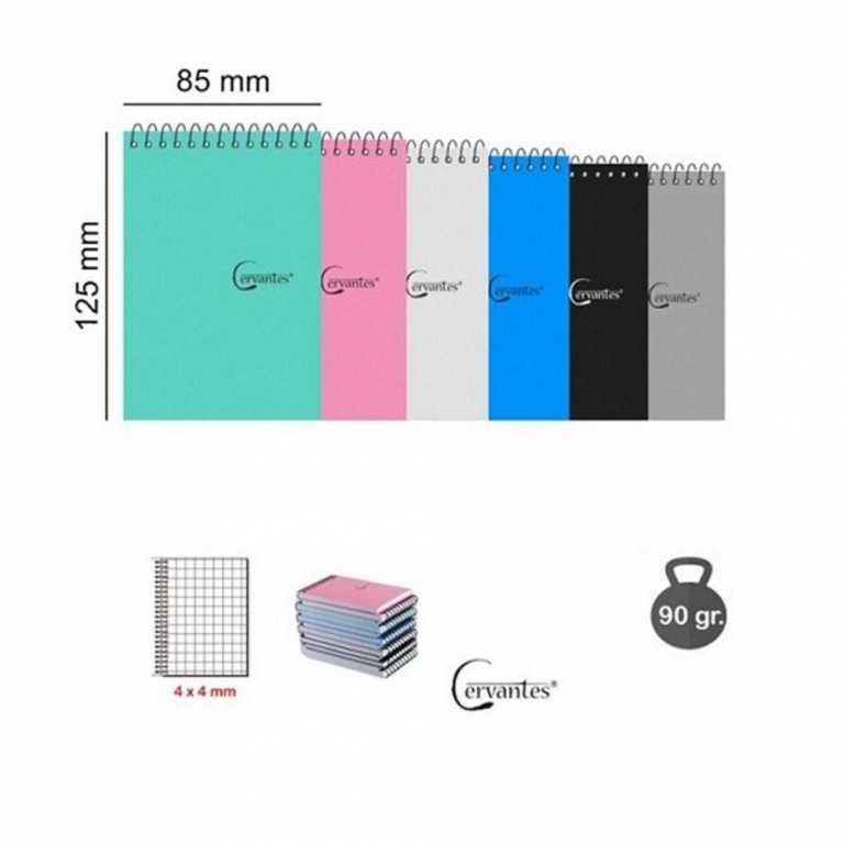 Užrašų knygutė Cervantes 85x125mm su spirale įvairių spalvų langeliais