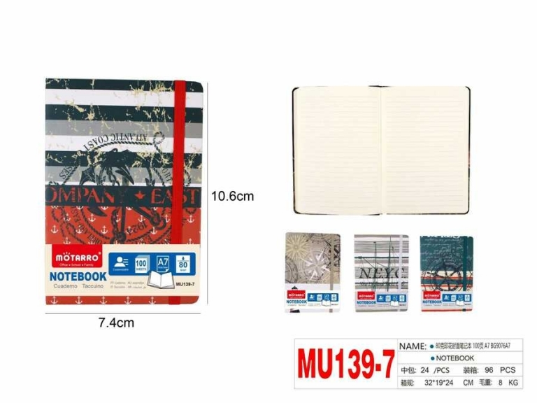 Užrašų knygutė MOTARRO 106x74mm 100l. linija