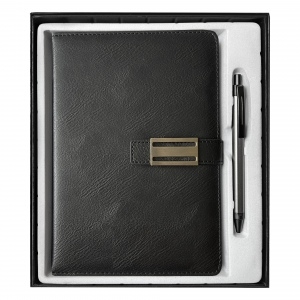 Dovaninis rinkinys: stilinga užrašų knygutė padengta aukštos kokybės dirbtine oda + tušinukas.