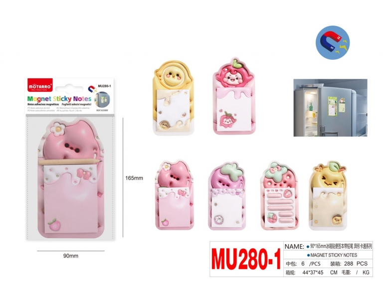 Užrašų lapeliai su magnetu 90x165mm + pieštukas VAISIAI MOTARRO