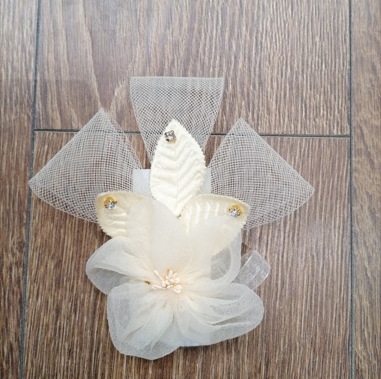 Užuolaidų laikiklis-dekoracija "Gėlė", baltos arba kreminės spalvos su blizgučiais