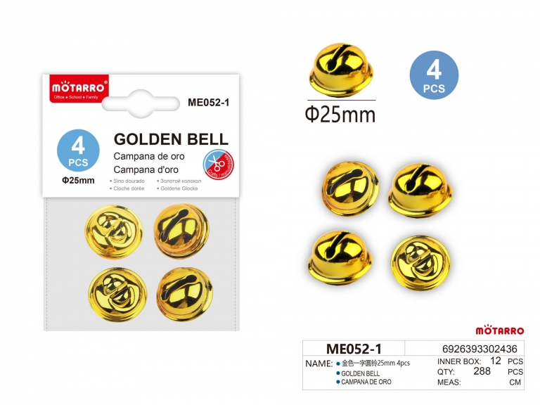Varpeliai 25mm 4vnt auksinės spalvos MOTARRO