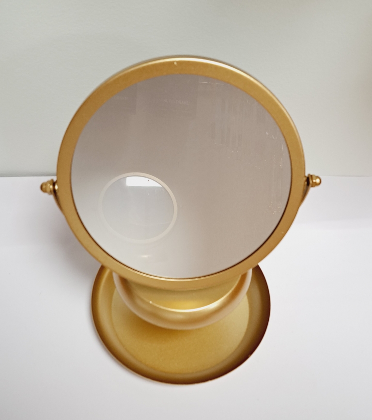Veidrodis pastatomas metal. auksinis rėmelis 21x21x3.5 cm.