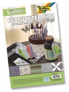 Rinkinį sudaro 5 filco (dirbtinio veltinio) lakštai įvairių dizainų.