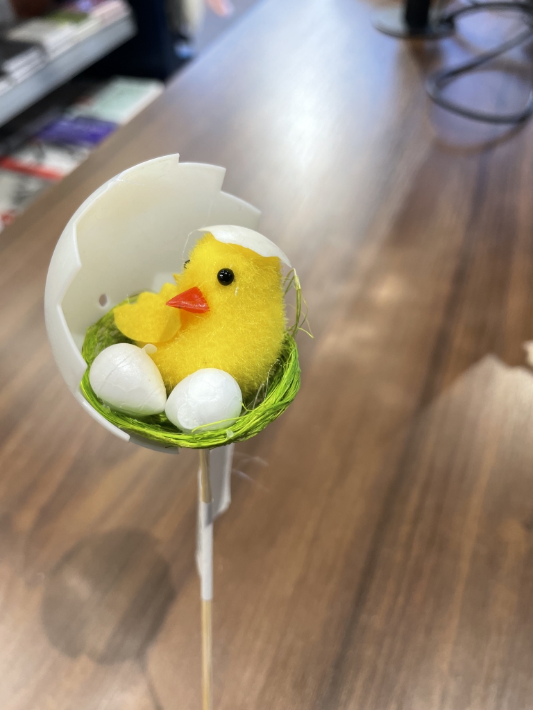 Velykinė kompozicija Viščiukas kiaušinyje ant pagaliuko