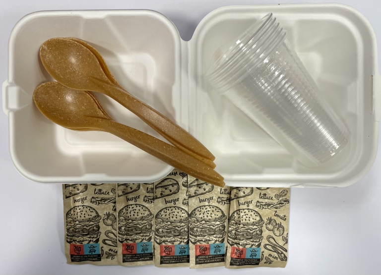 Vienkartinė dėžutė + šaukštas, stikline VEGWARE, 15,2x15,2 x7 cm, 5 vnt