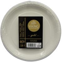 Vienkartinės popierinės lėkštės 18 cm. baltos spalvos 40vnt. VIKING