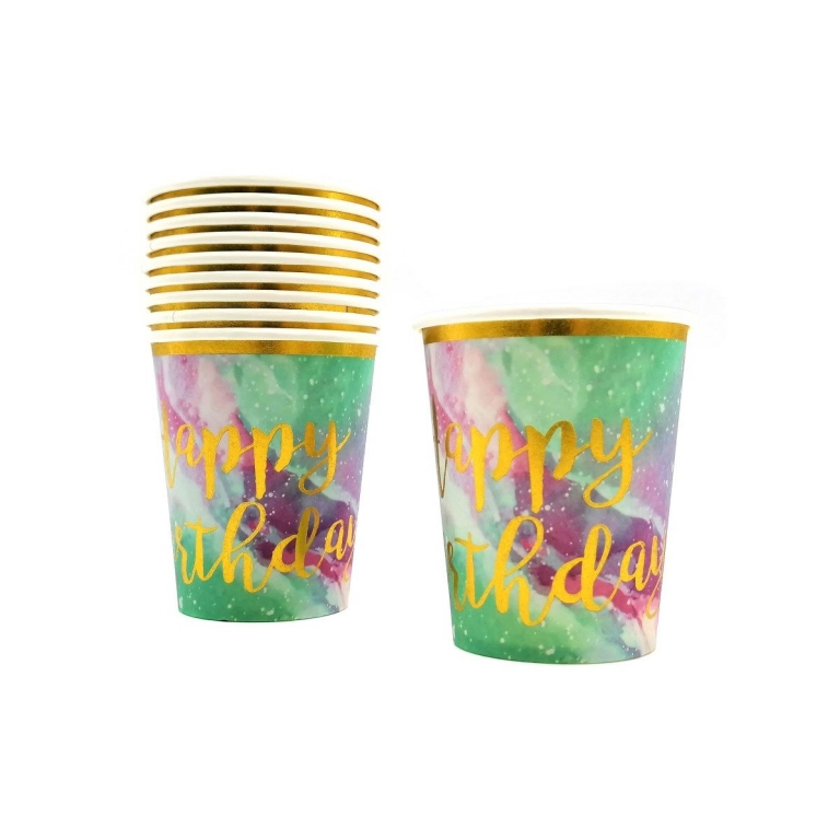 Vienkartiniai puodeliai "Happy Birthday", 10vnt.