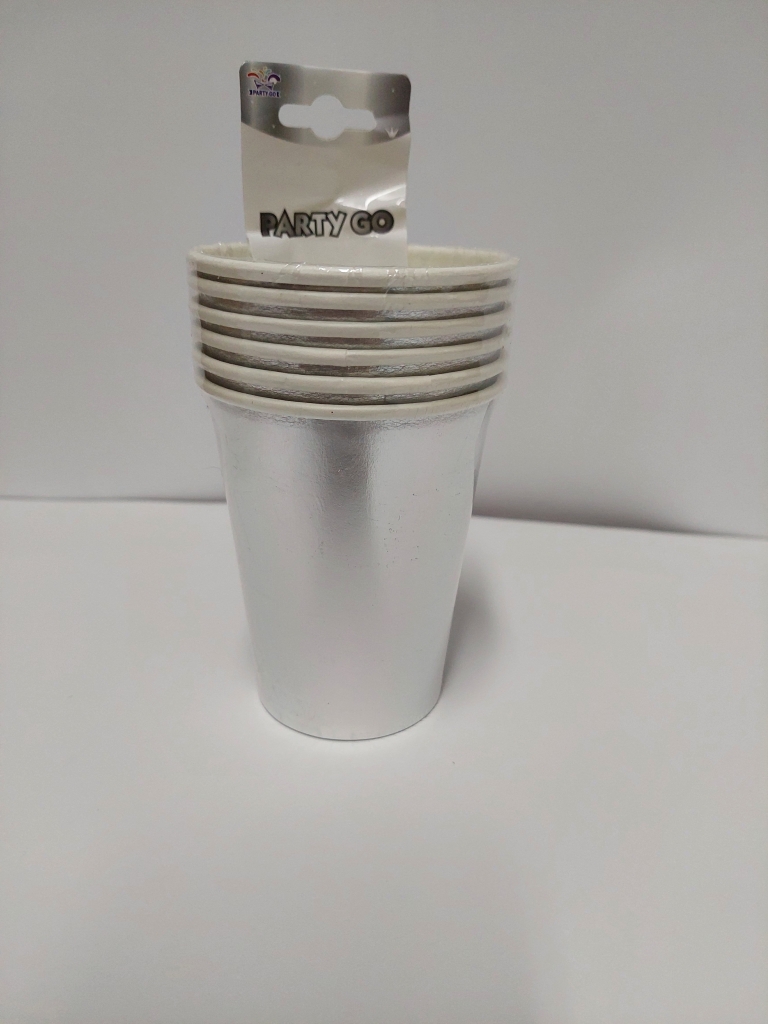 Vienkartiniai puodeliai sidabro spalvos,6vnt