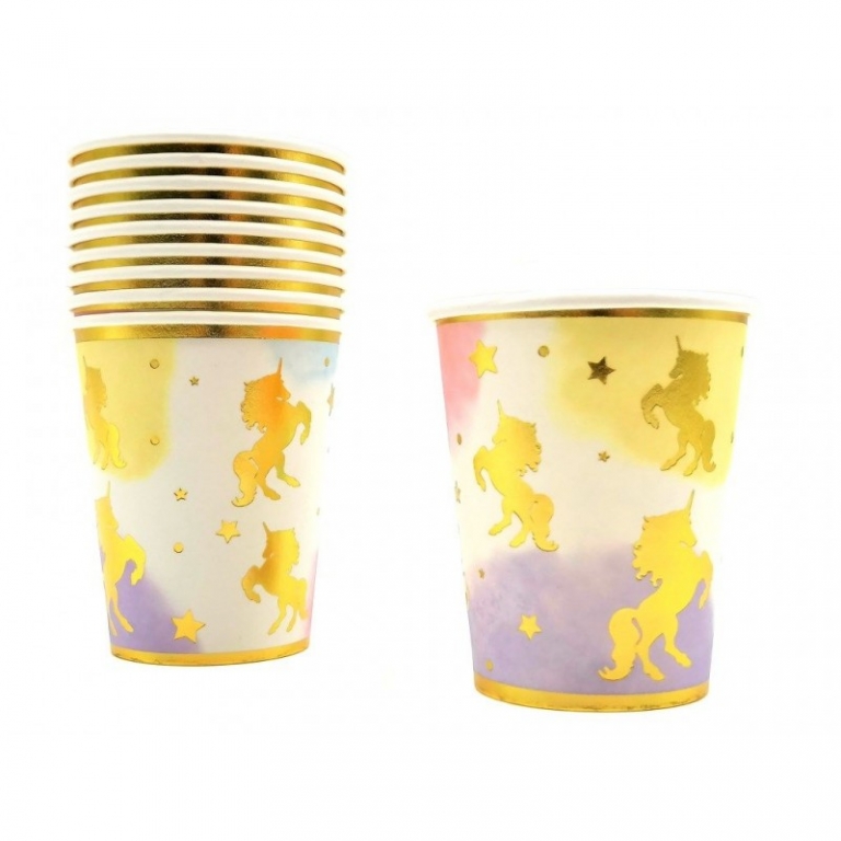 Vienkartiniai puodeliai su vienaragiais, 10vnt.