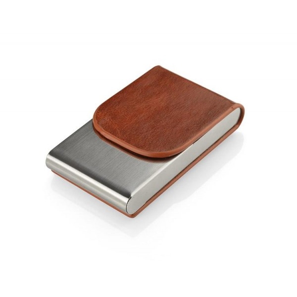 Vizitinių kortelių dėklas, 101x61x19mm. dirbtinės odos, rudos spalvos