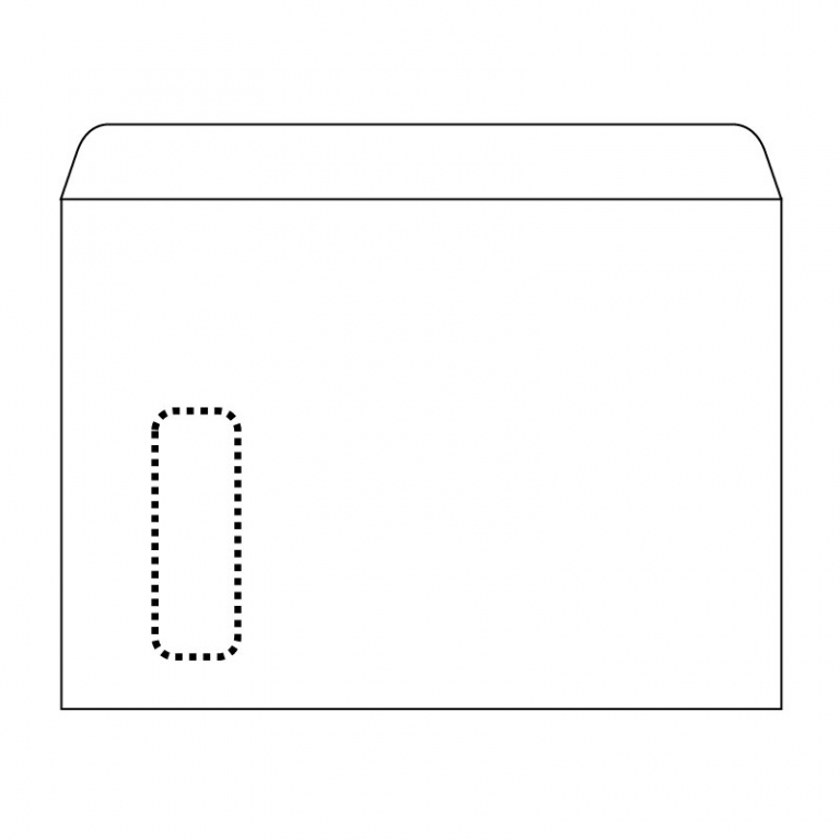 Vokai E4 su nuplėšiama juostele. Klijuojami nuplėšus popierinę juostelę. Pagaminta iš balto popieriaus. Popieriaus storis - 80g/m2. Su vertikaliu langeliu 95x35 mm. Matmenys 220x312 mm