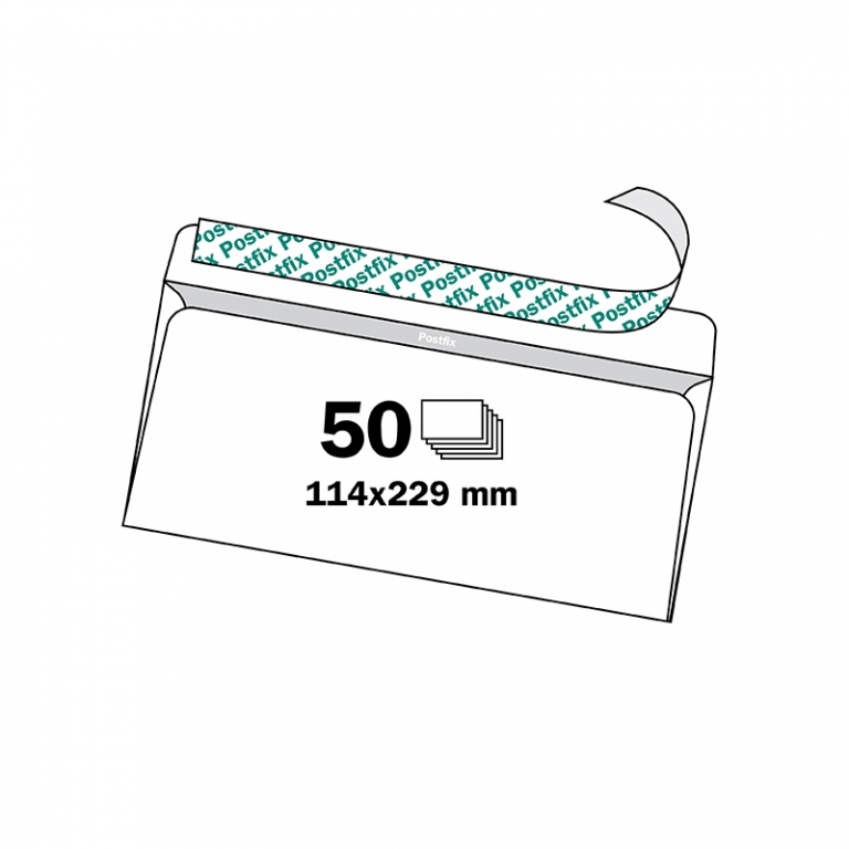 Vokai POSTFIX, C65, 114x229 mm 50 vnt., balta sp.