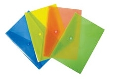 Aplankas - vokas su plastikiniu spaustuku mėlynos spalvos. Pagamintas iš pusiau skaidraus spalvoto plastiko. Skirtas laikyti nedideli kiekį dokumentų.